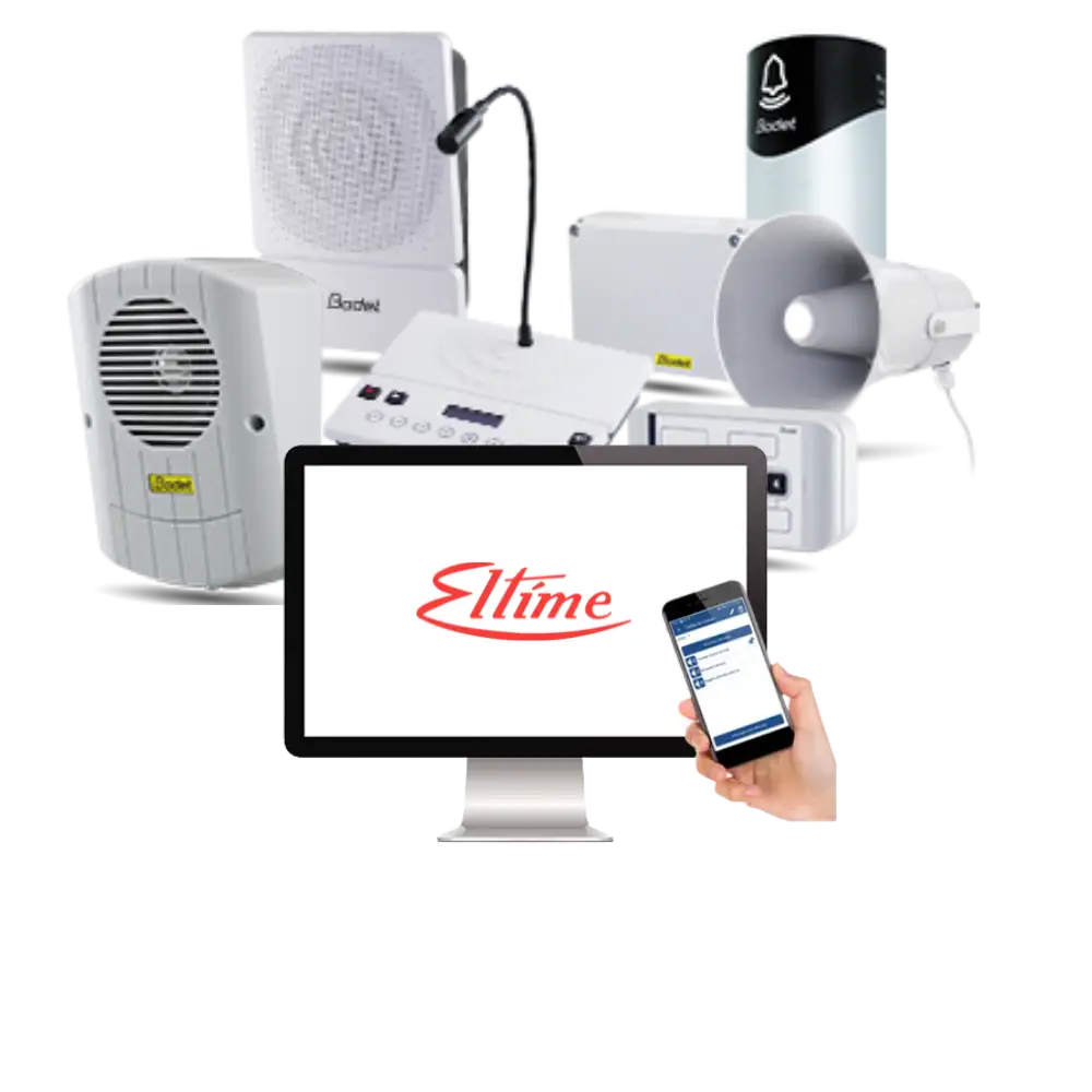 Alle Eltimes ringeanlæg og lydsystemer kan naturligvis konfigureres og styres direkte fra både computer og smartphone. Derudover kan løsningen udvides med praktisk tilbehør, der gør det endnu nemmere at håndtere både daglige klokkesignaler og akutte varslinger.