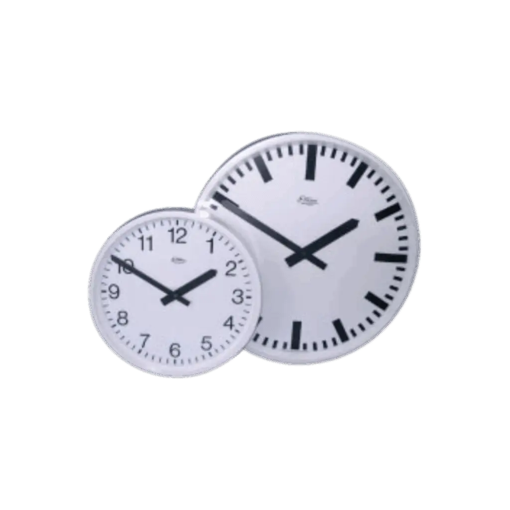 Vores modeller spænder fra Ø442 mm til Ø855 mm, afhængigt af synlighed og placering. Mindre ure er oplagte til facader og gårdrum, mens de største er ideelle til skoler, stationer, sportsanlæg og større udendørsarealer.